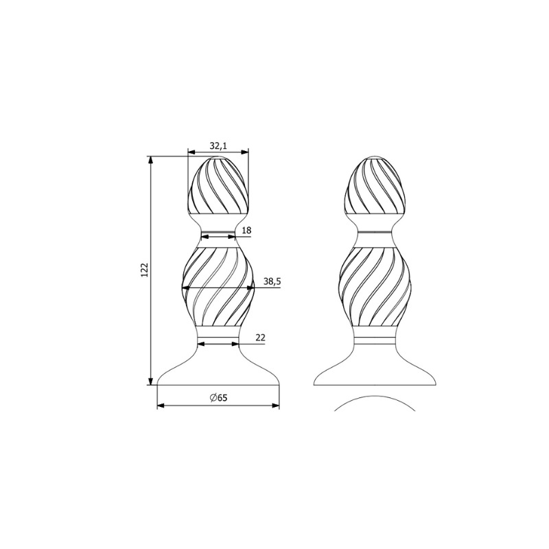Met een totale lengte van 122 mm en een diameter van 38,5 mmDe plug is ontworpen om een evenwichtige maat te bieden die comfortabel in gebruik is en tegelijkertijd een bevredigend gevoel van volheid geeft. De taps toelopende vorm zorgt voor een soepelere inbrenging, terwijl het geribbelde oppervlak een subtiele textuur toevoegt.